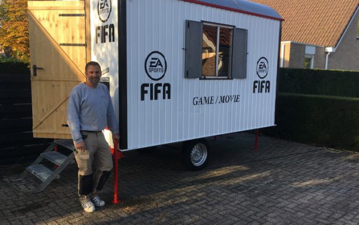 Tussen de bedrijven door turnde Emiel Dorst uit Bruinisse een houten schaftkeet om tot een eigen game- en filmhok. Een thuisbioscoop met groot scherm, twee echte bioscoopstoelen en drank en popcorn. Voor zijn zoon Yarick (21) en dochter Mila (18), maar stiekem ook een beetje voor zichzelf. Ons Eiland ging langs. “Je kunt er wel even in overleven.”